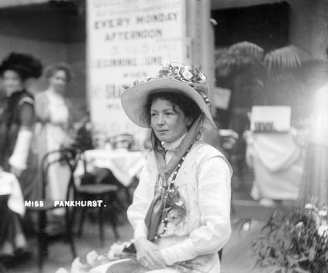 Christabel Pankhurst at The Women's Exhibition. Suffragette Christabel Pankhurst, the co-founder and leader of the Women's Social and Political Union, was photographed inside The Women's Exhibition held at Princes' Skating Rink, Knightsbridge, on 13-26 May 1909. Sale proceeds from the exhibition went into the union's suffrage campaign fund.