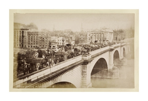 London Bridge with traffic The photos are in an album titled 'The City' which contains 20 albumen prints and one loose mounted albumen print. They date from the period 1875-1890.