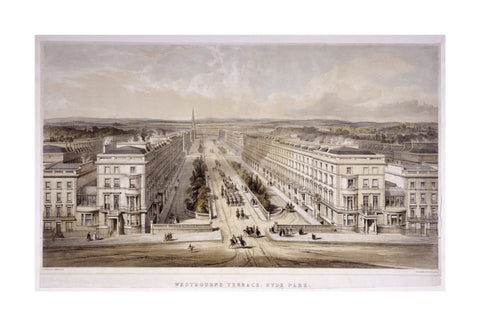 Lithograph by G. Hawkins (after J. Johnson) of Westbourne Terrace, built on the Bishop of London's Paddington estate to the designs of G. Stokes about 1843.